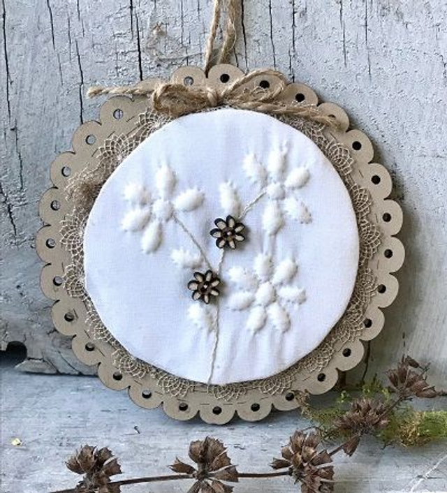 Kit de boutis cadre fleur - le kit comprend : le tissu , le coton fils et aiguilles , le cadre en bois peint , les boutons - explications et patron taille réelle