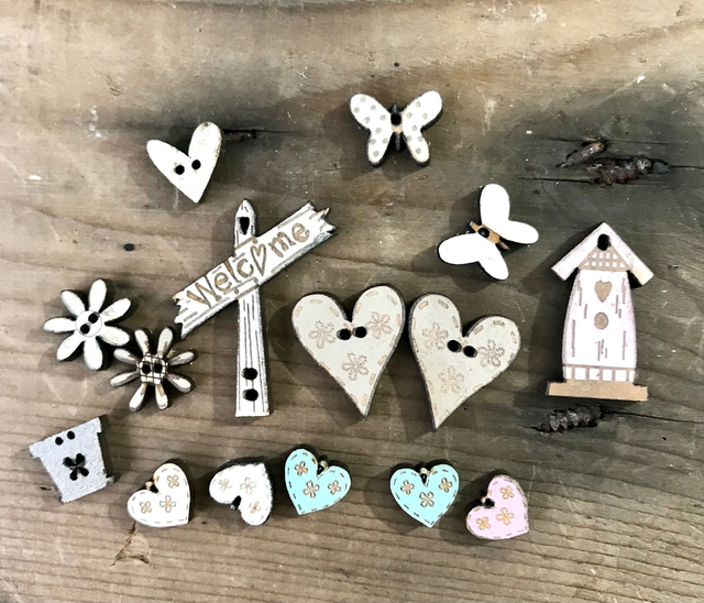 Oeufs assortis en bois peint et lot de mini boutons
